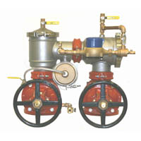 Lead Free - Domestic stainless steel body 2-1/2"-8". Ductile iron 10" and 12". Smaller footprint configuration, center stem guided TriForce check valves. Bypasses accurately measure low flows. Multiple shutoff valve options.