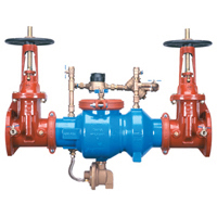Zurn Wilkins Reduced Pressure Detector Assembly. Designed for installation on water lines in fire protection systems to protect against both backsiphonage and backpressure of contaminated water into the potable water supply. The Model 375ADA shall provide protection where a potential health hazard exists. Incorporates metered by-pass to detect leaks and unauthorized water use